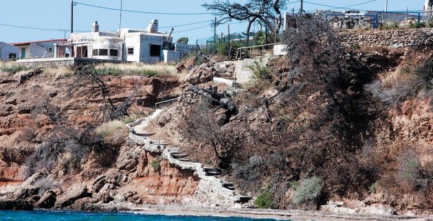 Μετά το μνημόσυνο κάτοικοι με δάκρυα στα μάτια προέβησαν σε μια συμβολική κίνηση, κατεβαίνοντας στην παραλία για να αφήσουν λίγα λουλούδια στη μνήμη των ανθρώπων που προσπαθούσαν επί ώρες να σωθούν από την πύρινη λαίλαπα καταφεύγοντας στη θάλασσα.