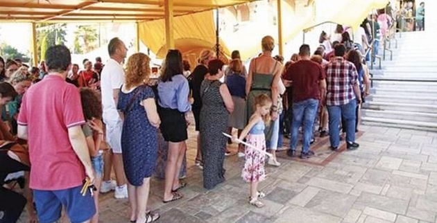 Από τις 21 του μήνα, οπότε άρχισαν οι εορταστικές εκδηλώσεις για την Απόδοση της Κοιμήσεως της Θεοτόκου, εκατοντάδες πιστοί κάθε ηλικίας έχουν πάει στην εκκλησία για να ανάψουν ένα κεράκι και να προσευχηθούν.