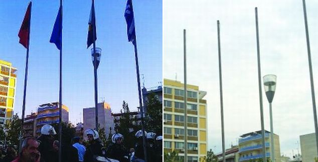 Μόνο τρεις μέρες έμεινε στον ιστό του πάρκου Δυρραχίου της Θεσσαλονίκης η σημαία της Αλβανίας, αφού πολλοί Θεσσαλονικείς θεωρούσαν τουλάχιστον πρόκληση να αντικρίζουν κάθε μέρα τη σημαία της γείτονος χώρας. Μόνο που μαζί με την αλβανική σημαία ο δήμος Θεσσαλονίκης κατέβασε και την ελληνική!