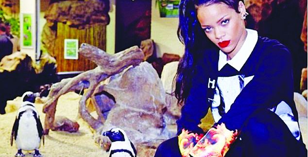 Ριάνα – πιγκουίνος, σημειώσατε στιλιστικό Χ! Η νικήτρια των βραβείων Grammy επέλεξε να φορέσει ένα σύνολο λογικής φράκου για να ποζάρει μαζί με τους πιγκουίνους που φιλοξενούνται στο ενυδρείο Two Oceans στο Κέιπ Τάουν. Με διάθεση μάλιστα να αστειευτεί, η νεαρή τραγουδίστρια πήρε ύφος πειραγμένης και ως λεζάντα στη φωτογραφία που ανέβασε στο Instagram έγραψε: «Το παλιόπουλο έκλεψε το look μου!» Η Riri, όπως είναι το χαϊδευτικό της με το οποίο έχει επιλέξει να εμφανίζεται στο twitter, έκανε ένα διάλειμμα από την περιοδεία της με τίτλο «Diamond», η οποία θα ολοκληρωθεί στη Νέα Ορλεάνη τον ερχόμενο μήνα, μετά από 97 συνολικά συναυλίες.