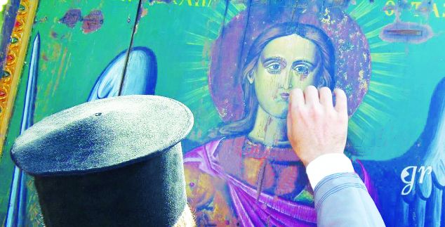 Αφού διαπίστωσε ότι πράγματι υπήρχαν σταγόνες στο πρόσωπο του Αρχαγγέλου, ζήτησε να μετακινήσουν την εικόνα από το σημείο όπου ήταν κρεμασμένη προκειμένου να εξεταστούν το πίσω μέρος της και ο τοίχος στον οποίο ακουμπούσε. Οταν βεβαιώθηκε πως δεν υπήρχε υγρασία, έδωσε εντολή να μεταφερθεί στον ναό Κοιμήσεως της Θεοτόκου, όπου εξετάστηκε από συντηρήτρια της Αρχαιολογικής Υπηρεσίας, που κι εκείνη δεν μπόρεσε να δώσει εξήγηση.