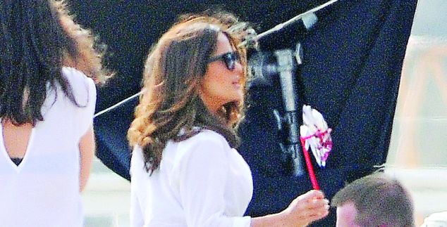 Η Σάλμα Χάγεκ και τα παιχνίδια με το αεράκι σε γυρίσματα για τη νέα ταινία με τον Μπρόσναν.