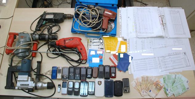 Σε τέσσερα σπίτια της σπείρας βρέθηκαν 2.400 ευρώ, κάρτες SIM, κρουστικά δρέπανα, ηλεκτρικά τρυπάνια και κατόψεις εσωτερικών χώρων σούπερ μάρκετ, σε μερικά από τα οποία είχαν γίνει ληστείες. Οι συλληφθέντες οδηγήθηκαν στον εισαγγελέα, ενώ οι έρευνες συνεχίζονται για τον εντοπισμό και των υπόλοιπων δραστών.