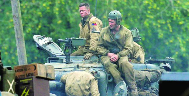 Την ίδια στιγμή, στην άλλη άκρη του πλανήτη, το Οξφορντσαϊρ της Βρετανίας, αντιμέτωπος με τις αντιξοότητες του Β’ Παγκόσμιου Πολέμου είναι και ο Μπραντ Πιτ. Φορώντας στολή παραλλαγής βουτηγμένη στις λάσπες, ο 49χρονος ηθοποιός διακρίνεται ανάμεσα σε τανκ, στα πλατό της νέας ταινίας του με τίτλο «Fury», όπου συμπρωταγωνιστεί στο πλευρό του Σάια ΛεΜπεφ. Η ταινία, που θα βγει στις αίθουσες έναν μήνα νωρίτερα από αυτή της συντρόφου του, διηγείται το στόρι του πληρώματος του τανκ Sherman, το οποίο ανέλαβε μια εξαιρετικά επικίνδυνη αποστολή κατά τις τελευταίες εβδομάδες του πολέμου.