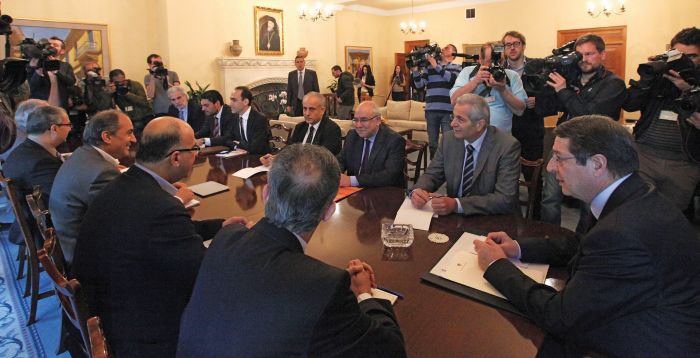 Με τη λύση αυτή αποκλειόταν το «κούρεμα» των καταθέσεων και φαινόταν εφικτός ο κύριος στόχος της κυπριακής κυβέρνησης να βρεθεί από άλλες πηγές μεγάλο μέρος από τα 5,8 δισ. ευρώ, τα οποία απαιτεί η ευρωζώνη προκειμένου να «ξεκλειδώσει» η παροχή πρόσθετης βοήθειας 10 δισ. ευρώ από την Ε.Ε. Ομως λίγες ώρες αργότερα και μέσω της τηλεδιάσκεψης του Eurogroup ήρθε η κατηγορηματική άρνηση από την τρόικα και όλα γίνονται και πάλι εφιαλτικά, αφού μεταξύ άλλων οι Ευρωπαίοι θέτουν νέους επώδυνους όρους. Μέσα σε αυτές τις εξελίξεις συνεδρίασαν εκτάκτως οι πολιτικοί αρχηγοί υπό τον πρόεδρο της Κύπρου Νίκο Αναστασιάδη κι εξέτασαν τα νέα δεδομένα.