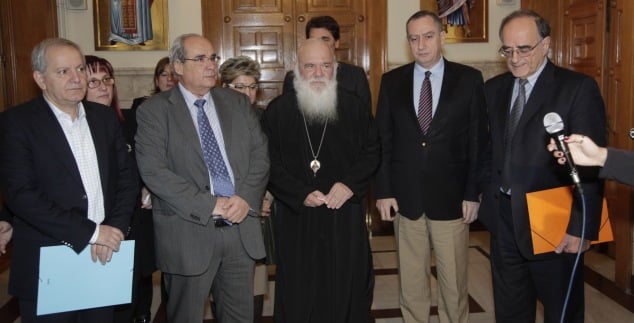 Χθες πραγματοποιήθηκε σύσκεψη που συγκλήθηκε στην Αρχιεπισκοπή για τους αστέγους και τη φτώχεια, με τη συμμετοχή του Αρχιεπισκόπου Αθηνών και Πάσης Ελλάδος Ιερωνύμου, του υπουργού Εσωτερικών Γιάννη Μιχελάκη, του γ.γ. Διαφάνειας και Ανθρωπίνων Δικαιωμάτων Γιώργου Σούρλα, του προέδρου της Κεντρικής Ενωσης Δήμων Κώστα Ασκούνη, του δημάρχου Πειραιά Βασίλη Μιχαλολιάκου και των αντιδημάρχων Κοινωνικής Πολιτικής του Δήμου Αθηναίων Αγγελικής Αντωνοπούλου και Θεσσαλονίκης Καλυψώς Γούλα.