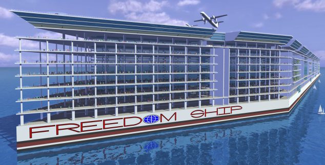 Τέλος, φανταστείτε αυτή την κοινότητα να βρίσκεται διαρκώς σε κίνηση ανά τον κόσμο. Τώρα αρχίζετε να κατανοείτε το concept του «Freedom Ship», της πρώτης πλωτής πόλης στον κόσμο, που θα στεγάζεται ουσιαστικά στο μεγαλύτερο κρουαζιερόπλοιο που κατασκευάστηκε ποτέ.