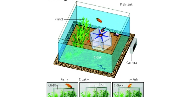 Κάπως έτσι η ομάδα του καθηγητή Τσεν Χόνγκσενγκ στο Πανεπιστήμιο Ζετζιάνγκ δημοσιοποίησε τον περασμένο μήνα ένα βίντεο, το οποίο παρουσίαζε μια συσκευή που έκανε αόρατο ένα ψάρι. Η ίδια τεχνολογία «εξαφάνισε» πιο πρόσφατα μια γάτα. Πρόκειται για μια συσκευή που αποτελείται από μια εξάγωνη διάταξη υαλοπινάκων που καμουφλάρουν το αντικείμενο στρέφοντας το φως γύρω του.