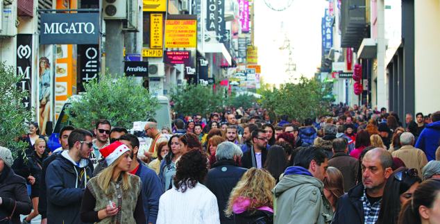 Γέμισαν κόσμο χθες οι εμπορικοί δρόμοι στη γιορτινή Αθήνα, με τους καταναλωτές μόνο να χαζεύουν τις βιτρίνες.