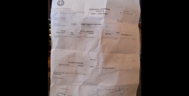 Ξεπερνώντας την αρχική έκπληξη-σοκ, ο Πρεβεζάνος έβγαλε από την τσέπη του το 1 λεπτό για να πάρει τη φορολογική ενημερότητα και να τελειώνει τη δουλειά του όσο το δυνατό συντομότερα. Για του λόγου το αληθές, υπάρχει το διπλότυπο είσπραξης που επιβεβαιώνει τα λεγόμενα του πολίτη.