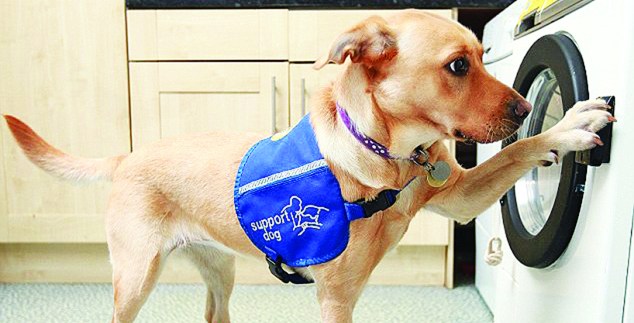 Χάρη στην οικιακή συσκευή Woof to Wash, που ενεργοποιείται με το γάβγισμα, ειδικά εκπαιδευμένα σκυλιά μπορούν να βοηθήσουν άτομα με ειδικές ανάγκες στο πλύσιμο των ρούχων. Η πόρτα του πλυντηρίου ανοίγει με το πάτημα ενός κουμπιού, εύκολα προσβάσιμο από τις μπροστινές πατούσες των ζώων, και ενεργοποιείται με τη «φωνητική» εντολή των σκύλων, που δίνεται μέσω συστήματος μικρόφωνου που διαθέτει.