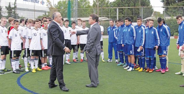 Στη Γερμανική Σχολή Αθηνών βρέθηκε χθες ο Οτο Ρεχάγκελ μαζί με τον Γερμανό υφυπουργό Εργασίας Γιοακίμ Φούχτελ για να παρακολουθήσει τον φιλικό αγώνα επίλεκτων ποδοσφαιριστών – φοιτητών μεταξύ Ελλάδας και Γερμανίας, στο πλαίσιο της σύσφιξης των σχέσεων των δύο λαών. Ο πρώην ομοσπονδιακός τεχνικός, που σε κάθε βήμα του στη χώρα μας συνοδεύεται από τον (πιστό) συνεργάτη του Γιάννη Τοπαλίδη, συγκέντρωσε τους ποδοσφαιριστές στο κέντρο του γηπέδου πριν από την έναρξη του αγώνα και τους μίλησε για την προσπάθεια που πρέπει να κάνει η Ελλάδα για να ξεπεράσει την κρίση. Οπως είπε, την εποχή που ανέλαβε την εθνική ομάδα και αυτή διερχόταν μια κρίση, αλλά με πολλή δουλειά μπόρεσε να την ξεπεράσει και έφτασε στο σημείο να κατακτήσει το Ευρωπαϊκό Πρωτάθλημα. Στη Γερμανική Σχολή Αθηνών τον Ρεχάγκελ υποδέχθηκε ο Γιάννης Ιωαννίδης, ενώ τον αγώνα παρακολούθησε ο Αντώνης Αντωνιάδης. Ευχάριστη στιγμή αποτέλεσε για τον Οτο η παρουσία του Τάκη Φύσσα, τον οποίο είχε παίκτη στην εθνική ομάδα για πολλά χρόνια. Για την ιστορία, οι Ελληνες ποδοσφαιριστές έβγαλαν το άχτι τους απέναντι στους (λιγότερο προετοιμασμένους) Γερμανούς και τους φιλοδώρησαν με μια ντουζίνα γκολ. 12-0 έγραψε το ταμπλό…