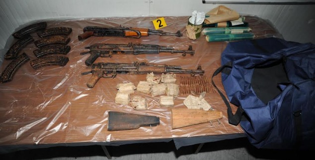 Στο πορτμπαγκάζ του Ι.Χ., μέσα σε δύο σακβουαγιάζ βρέθηκαν και κατασχέθηκαν τέσσερα βλήματα RPG, τέσσερις προωθητικοί μηχανισμοί RPG, ένας εκτοξευτήρας ιδίου τύπου, τέσσερις χειροβομβίδες με τους πυροκροτητές τους, τρία υποπολυβόλα καλάσνικοφ (τα οποία ήταν «καθαρά»), επτά γεμιστήρες για τα συγκεκριμένα υποπολυβόλα, δύο κοντάκια, περισσότερες από 200 σφαίρες, γάντια και κουκούλες τύπου full face.