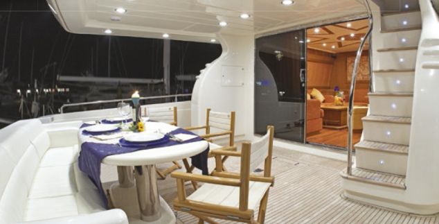Με τιμή 18.750.000 ευρώ, το σκάφος που έχει φιλοξενήσει κατά καιρούς διασημότητες, κατασκευασμένο το 2008, μπορεί να υπερηφανεύεται για τους όμορφα διακοσμημένους εσωτερικούς του χώρους αλλά και για τα «παιχνίδια» τελευταίας τεχνολογίας που διαθέτει για ψυχαγωγία. Με δυνατότητα φιλοξενίας 12 ατόμων, διαθέτει jacuzzi και εκπληκτικό σαλόνι με πολυτελή έπιπλα.
