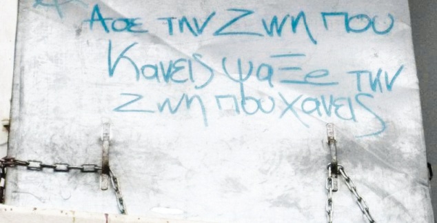 «Ασε τη ζωή που κάνεις, ψάξε τη ζωή που χάνεις…»! Μόλις αντίκρισε τα λόγια αυτά γραμμένα πάνω σε ένα τοίχο, αμέσως αποφάσισε να τα ανεβάσει στο προσωπικό του προφίλ στο facebook.