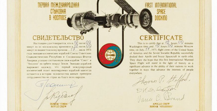 Τη δυνατότητα πώλησης εγγράφων και αντικειμένων από το Διάστημα έδωσε ιστορική απόφαση του Κογκρέσου, η οποία ψηφίστηκε τον περασμένο Σεπτέμβριο. Αυτή δίνει στους αστροναύτες των προγραμμάτων «Mercury», «Gemini» και «Apollo» το δικαίωμα να πουλούν τα αναμνηστικά τους από το Διάστημα για τουλάχιστον σαράντα χρόνια. Ενα από τα πιο ενδιαφέροντα κομμάτια της δημοπρασίας είναι σίγουρα η λεγόμενη «Magna Carta» του Διαστήματος, ένα έγγραφο που αντιπροσωπεύει τη συνεργασία των ΗΠΑ και της πρώην ΕΣΣΔ, το οποίο υπεγράφη στις 17 Ιουλίου του 1975 στο Διάστημα από Αμερικανούς και Ρώσους αστροναύτες. Η ημερομηνία εκείνη σηματοδοτεί την κορύφωση του προγράμματος «Apollo – Σογιούζ», της πρώτης κοινής διαστημικής αποστολής ΗΠΑ και πρώην Σοβιετικής Ενωσης, ένα από τα πιο σημαντικά βήματα στην κούρσα της κατάκτησης του Διαστήματος, στη διάρκεια του Ψυχρού Πολέμου. Στη δημοπρασία συμπεριλαμβάνεται το αντίγραφο που δόθηκε στους Ρώσους κοσμοναύτες και η τιμή εκκίνησής του είναι τα 70.000 δολάρια.