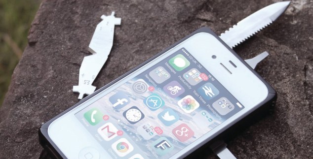 Επίσης, έχει έναν κόφτη σύρματος και απογυμνωτή καλωδίου, έξι κλειδιά τύπου Allen, έχει όμως και δύο στηρίγματα που βοηθούν τον χρήστη όταν θέλει να χρησιμοποιεί το iPhone ως τηλεόραση. Ολα τα εργαλεία είναι κατασκευασμένα από ανοξείδωτο ατσάλι 440C και είναι ενσωματωμένα στη θήκη, η οποία είναι κατασκευασμένη από αλουμίνιο και πολυανθρακικά υλικά και ζυγίζει μόλις 89 γραμμάρια. Και το κυριότερο; Προσθέτει μόνο πέντε χιλιοστά πάχος στο κινητό. Η θήκη βγαίνει σε ασημί, μαύρο, πορτοκαλί και κόκκινο χρώμα και είναι διαθέσιμη για iPhones 4, 4S (κοστίζει 80 δολάρια) και iPhones 5 και 5S (κοστίζει 100 δολάρια).