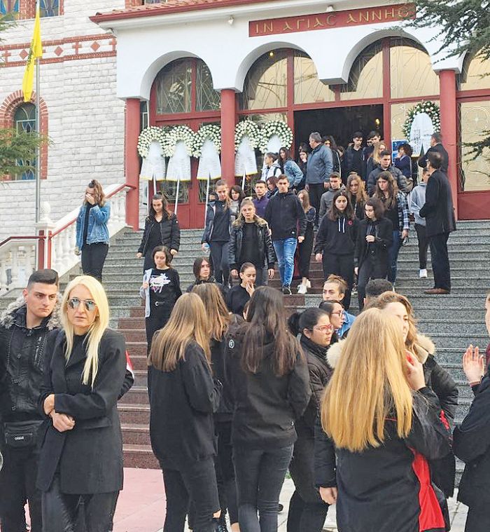 Η τελευταία πράξη του δράματος της Κατερίνης γράφτηκε χθες το πρωί, με τη διπλή κηδεία της 17χρονης Μαρίας-Ιωάννας Δεληγιάννη και της 45χρονης μητέρας της Σβέτα, που ανασύρθηκαν νεκρές από χαράδρα βάθους 120 μέτρων, όπου έπεσαν με το αυτοκίνητό τους. Σε κλίμα βαθιάς οδύνης συγγενείς και φίλοι προσήλθαν στον Ιερό Ναό της Αγίας Άννας στην Κατερίνη, δίπλα από το σπίτι της οικογένειας, για να πουν το τελευταίο «αντίο». Συγκλονισμένοι και οι συμμαθητές της 17χρονης από το 3ο Λύκειο, που παρέστησαν επίσης μαζικά στην εξόδιο ακολουθία, λόγω της οποίας το σχολείο έμεινε κλειστό.