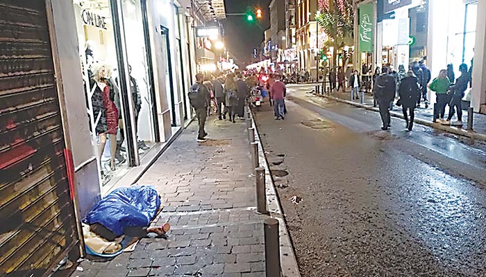 Είναι οι άστεγοι που κάθονται διακριτικά στις σκοτεινές γωνιές της στολισμένης πόλης προσπαθώντας να εξασφαλίσουν τα απαραίτητα για να επιβιώσουν ακόμη ένα βράδυ μέσα στο κρύο. Γι’ αυτούς δεν υπάρχουν γιορτές, αλλά απλώς ακόμη μια μέρα που προσπαθούν να τα βγάλουν πέρα, ελπίζοντας σε λίγη βοήθεια από τους περαστικούς. Λίγο φαγητό, ένα παλιό ρούχο, πολλές φορές απλά ένα χαμόγελο, αρκούν για να νιώσουν και αυτοί ένα σκίρτημα θαλπωρής και ζεστασιάς.