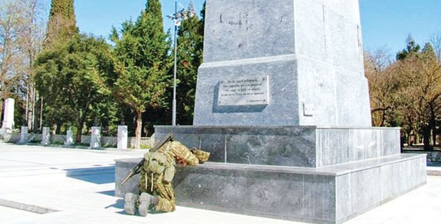 Νεαρός στρατιώτης γονατίζει συγκινημένος μπροστά στον ανδριάντα του Κολοκοτρώνη στην πλατεία Αρεως, στην Τρίπολη, και αποσπά το πιο θερμό χειροκρότημα των παρευρισκομένων στην επετειακή πορεία με την επωνυμία «1ο Τρόπαιο Εθνικής Επετείου 25ης Μαρτίου 1821», την οποία διοργάνωσε το Γενικό Επιτελείο Εθνικής Αμυνας.