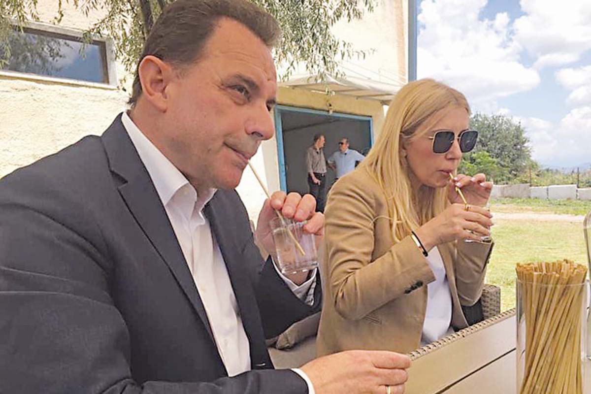 Δύο υφυπουργοί και φίλοι, ο Ψηφιακής Πολιτικής Γιώργος Γεωργαντάς και η Αγροτικής Ανάπτυξης Φωτεινή Αραμπατζή, δοκίμασαν πρώτοι τα καλαμάκια από… σιτάρι.