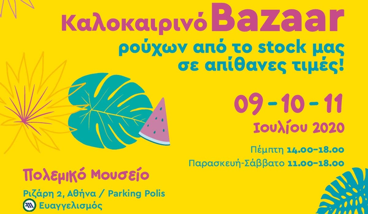Στο φετινό Καλοκαιρινό Bazaar Ρούχων, που θα πραγματοποιηθεί, μεταξύ 9/7 – 11/7,