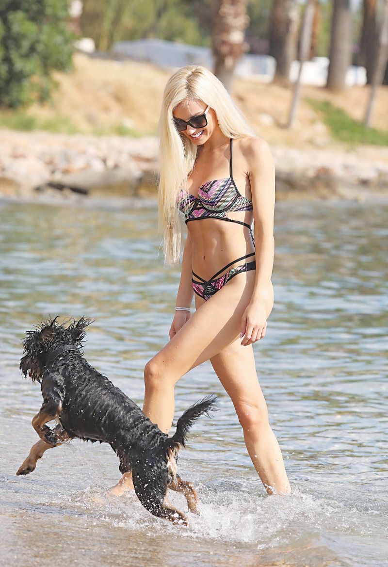 Ο φωτογραφικός φακός της «Εspresso» αιχμαλώτισε τα κορίτσια να σουλατσάρουν στην αμμουδιά και να παίζουν με τα σκυλάκια τους, τα οποία έδειχναν κι εκείνα να το ευχαριστιούνται με το παραπάνω.