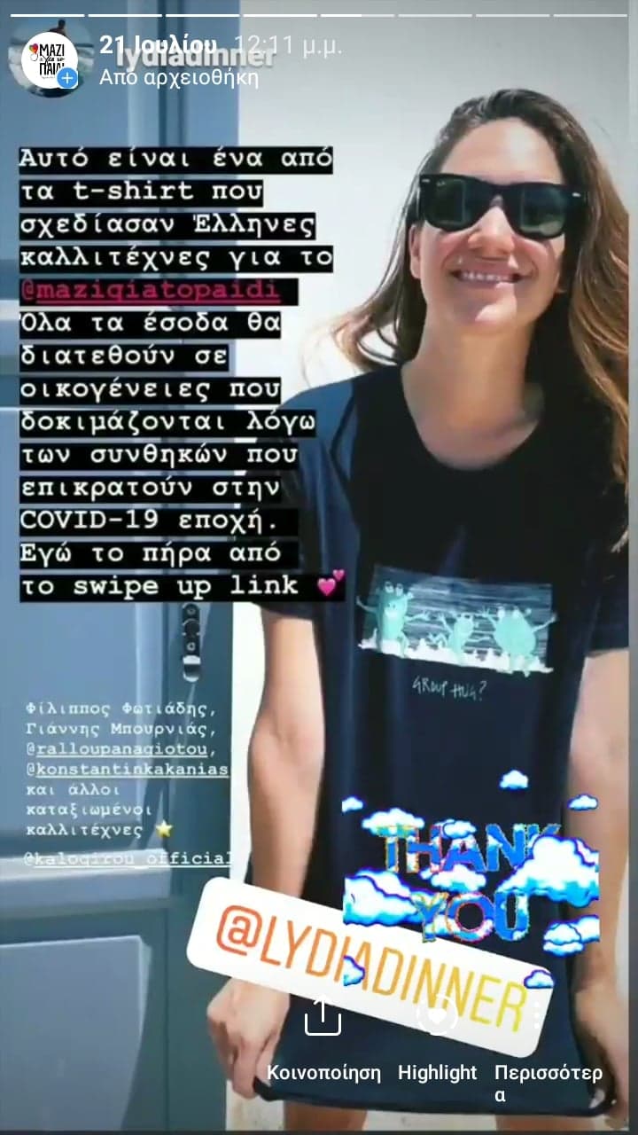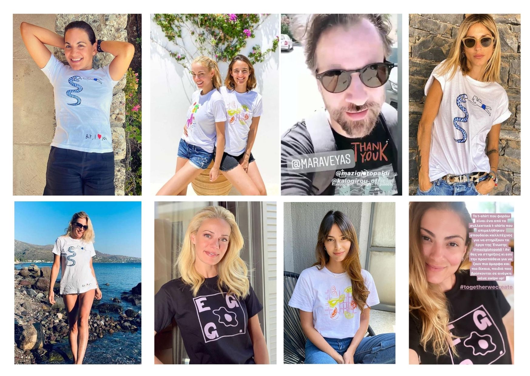 Άλκηστις Πρωτοψάλτη, Άννα Βίσση, Όλγα Κεφαλογιάννη, Δούκισσα Νομικού, Σάκης Ρουβάς, Κάτια Ζυγούλη,  Μαρίνα Βερνίκου, Ευαγγελία Σμυρνιωτάκη, Τόνια Σωτηροπούλου, Κωστής Μαραβέγιας,  Σμαράγδα Καρύδη, Μαίρη Συνατσάκη είναι μόνο μερικοί από τους επώνυμους φίλους της Ένωσης Μαζί για το Παιδί, που διάλεξαν το δικό τους  συλλεκτικό T-shirt, για να ενισχύσουν οικογένειες, που πλήττονται οικονομικά λόγω του covid-19 και να διαδώσουν το μήνυμα της προσπάθειάς μας.