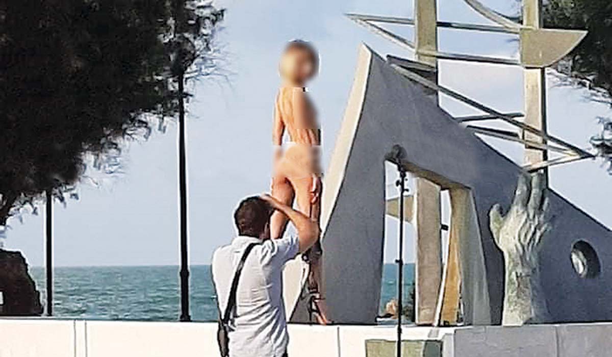 Άφωνοι έμειναν οι περαστικοί από το μνημείο του ναυαγίου «Ηράκλειον» στην πλατεία Τάλω στα Χανιά, βλέποντας μια ξανθιά, αιθέρια ύπαρξη να ποζάρει προκλητικά στον φακό ενός φωτογράφου σχεδόν όπως τη γέννησε η μαμά της!
