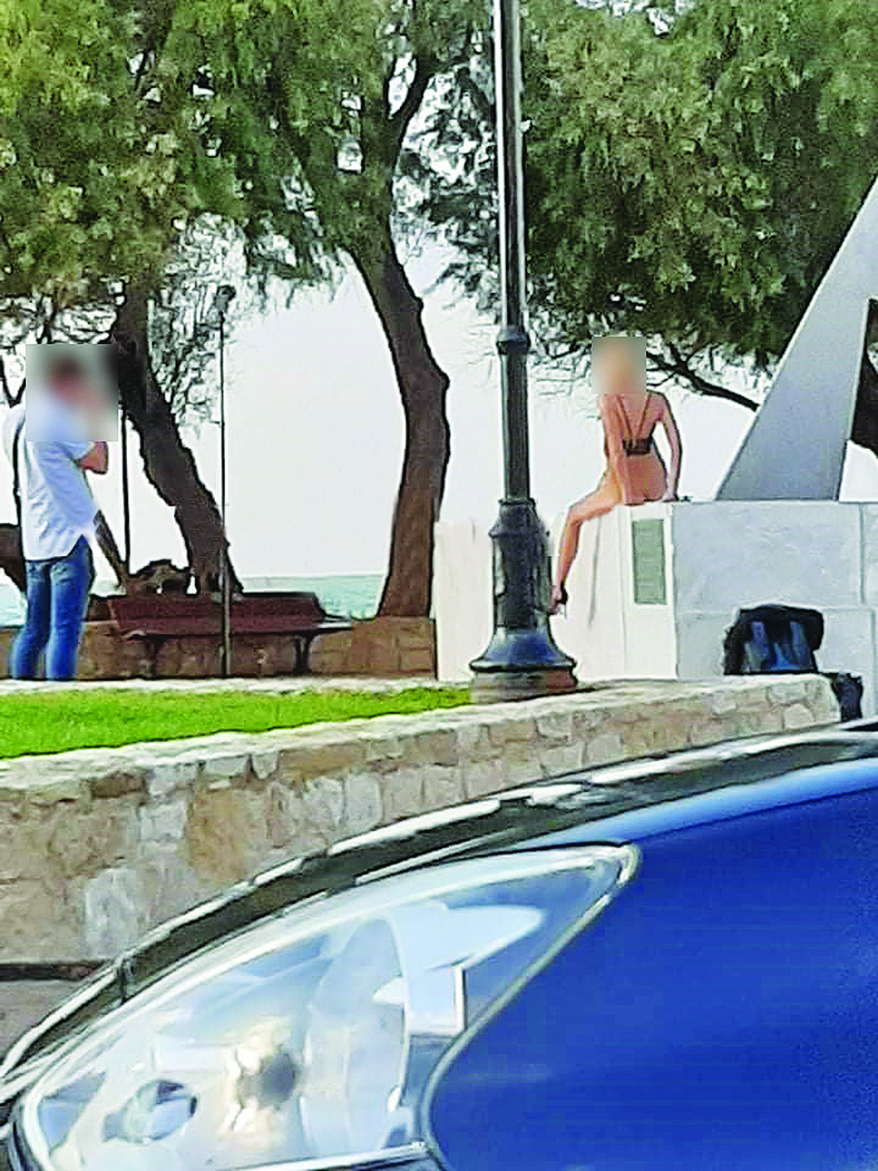 Όσοι έτυχε να περνούν εκείνη την ώρα από το σημείο είδαν έκπληκτοι την ξεδιάντροπη «Εύα», αγνώστων λοιπών στοιχείων, να στήνεται με χάρη… πορνοστάρ μπροστά από τον φωτογράφο, ο οποίος έκανε τη δουλειά του σαν μην τρέχει τίποτα, αδιαφορώντας αν γίνει αντιληπτός!