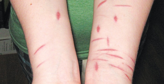 Χιλιάδες νέα παιδιά αναζητώντας διέξοδο στα προβλήματά τους δεν διστάζουν χρησιμοποιώντας το ξυραφάκι από την ξύστρα να προκαλούν τραύματα σε διάφορα σημεία του σώματός τους και κυρίως στα χέρια τους. Οπως λένε μεταξύ τους: