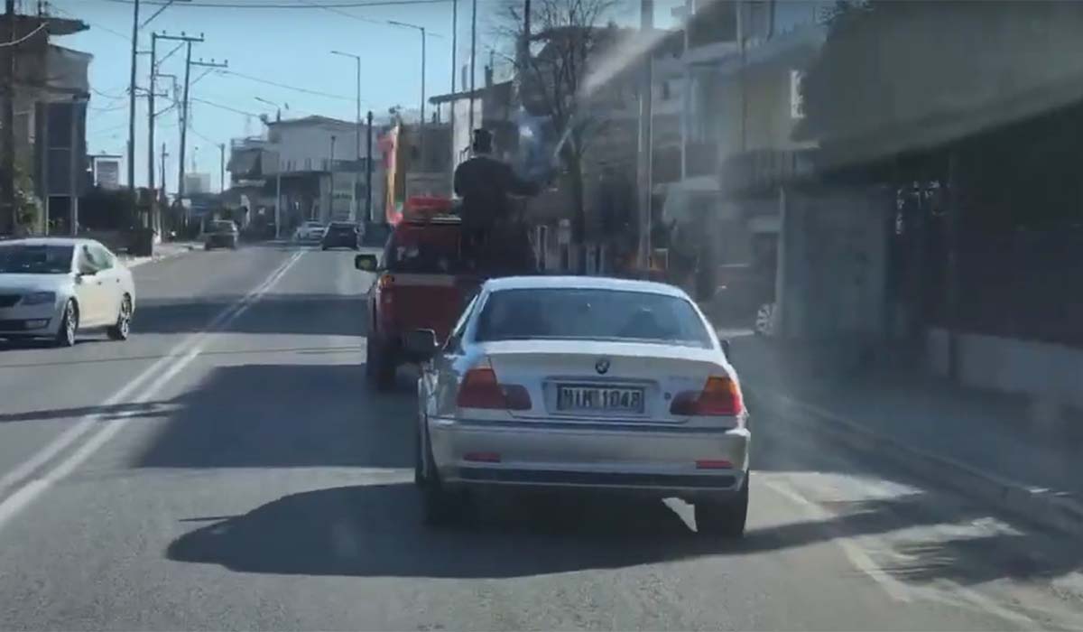 Ο Ιερέας Νικόλαος Καρανάσιος που υπηρετεί στο Λιανοκλάδι ανέβηκε σε αγροτικό και ξεκίνησε να «αγιάζει» τους πιστούς με μάνικα.