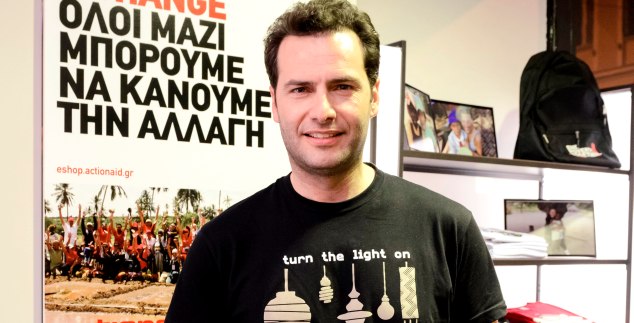 Ο Π. Μπουγιούρης στα εγκαίνια νέου μαγαζιού με είδη της Action Aid.