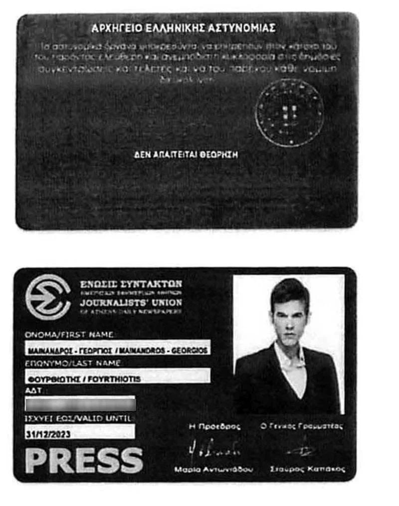 Ωστόσο, αυτή την ταυτότητα είχε αποστείλει ο Φουρθιώτης στο γραφείο Τύπου του υπουργείου Παιδείας, προκειμένου να αποκτήσει πρόσβαση στην ενημέρωση ως διαπιστευμένος συντάκτης.