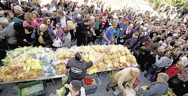 Ομως και οι παραγωγοί λαϊκών αγορών συνέχισαν την Τετάρτη τις κινητοποιήσεις τους, με τη δωρεάν διανομή των προϊόντων τους σε επτά λαϊκές αγορές της Αττικής, σε Νίκαια, Περιστέρι, Ανω Νέα Σμύρνη, Μενίδι, Δραπετσώνα, Ελευσίνα και Κολωνό. Πλήθος συνταξιούχοι, άνθρωποι του μεροκάματου και άστεγοι περίμεναν σε ουρές χιλιομέτρων για μία σακούλα με λαχανικά ή φρούτα.