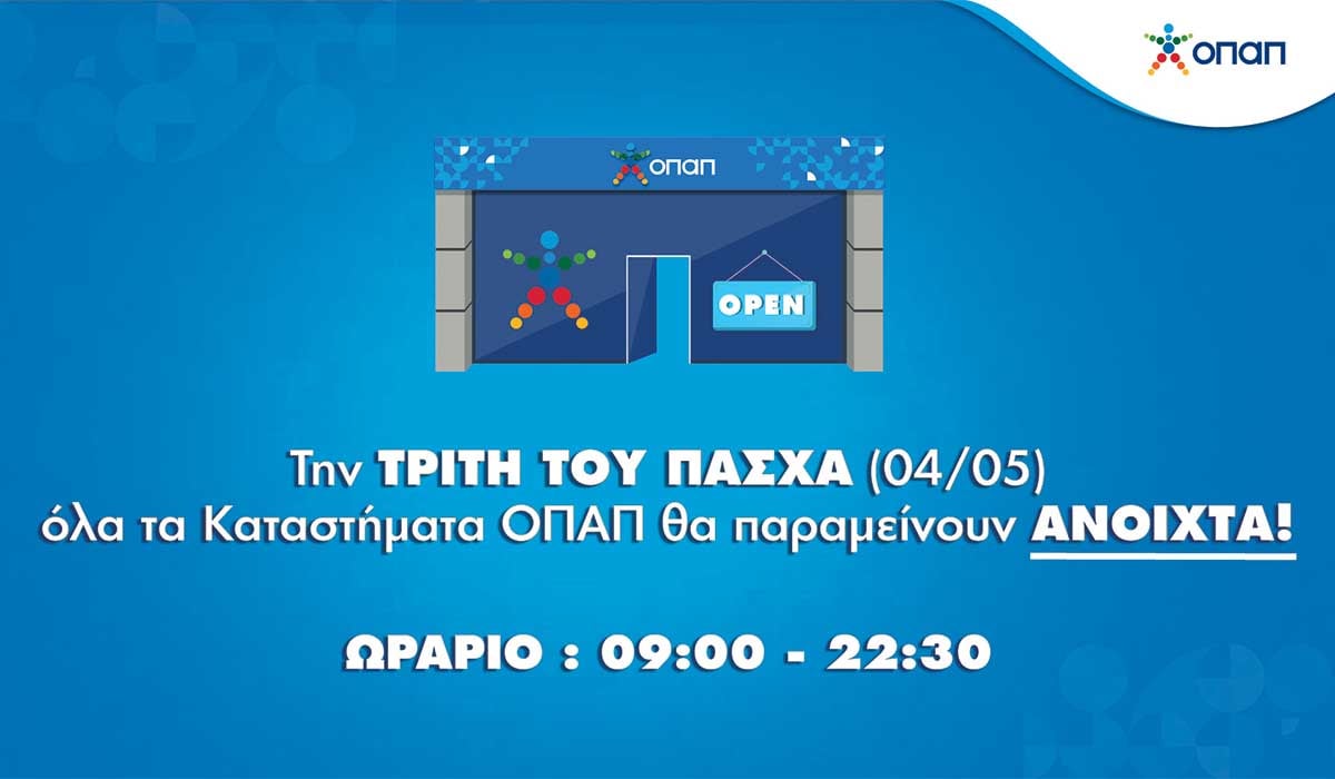 Ανοιχτά αύριο τα καταστήματα ΟΠΑΠ σε όλη την Ελλάδα – Καθημερινό ωράριο λειτουργίας 9:00 – 22:30