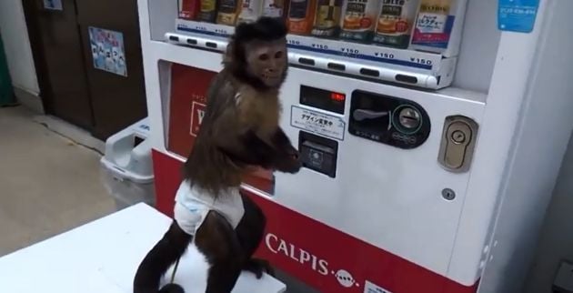 Μαϊμού αγοράζει αναψυκτικό από αυτόματο πωλητή!