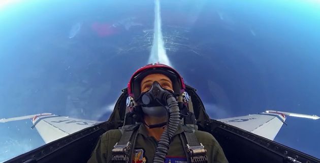 Ο φωτογράφος Μπλερ Bunting απολαμβάνει μια βόλτα στο πίσω κάθισμα ενός F-16 της Air Force Thunderbirds στις ΗΠΑ για πρώτη φορά…