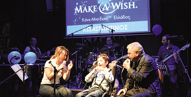 Ο Κωνσταντίνος Γιαννόπουλος, που πάσχει από εκ γενετής εγκεφαλική παράλυση, ευχήθηκε με πάθος να γίνει τραγουδιστής. Επέλεξε μόνος του τα τραγούδια που αγαπάει περισσότερο και με τη βοήθεια της ερμηνεύτριας Ζωής Παπαδοπούλου στήθηκε η ορχήστρα, βρέθηκε το στούντιο, κανονίστηκε ο χώρος και όλα ήταν έτοιμα για την μεγάλη μέρα. Ετσι την περασμένη Κυριακή στο Ρυθμός Stage οι «καλές νεράιδες» του Make-A-Wish Greece έφτιαξαν το απόλυτο σκηνικό για τη βραδιά.