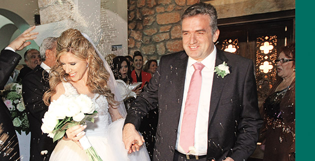 Η Φραντζέσκα, όπως εθιμοτυπικά κάνει κάθε νύφη, άργησε περίπου μισή ώρα να φτάσει στην εκκλησία, απαστράπτουσα μέσα στο ρομαντικό νυφικό που σχεδίασε για εκείνη η Μαρία Κονίδη. Τα μαλλιά και το make up είχε επιμεληθεί ο Πάνος Καλλίτσης.