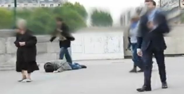 Ένας άντρας πέφτει στους δρόμους του Παρισίου ντυμένος την πρώτη φορά ως άστεγος και την δεύτερη φορώντας ένα κοστούμι.Οι αντιδράσεις των περαστικών γύρω του είναι τραγικές.