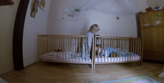 Τα δυο ζιζάνια οργάνωσαν ολόκληρη «επιχείρηση» για να πιάσουν την πιπίλα που έπεσε κάτω! Οι δυο «άτακτες» διδυμούλες κάνουν στρατηγικές, σηκώνονται από τη μια πλευρά, σπρώχνουν το κρεβάτι τους, βγάζουν το χέρι τους για να φτάσουν την πιπίλα αλλά τίποτα.