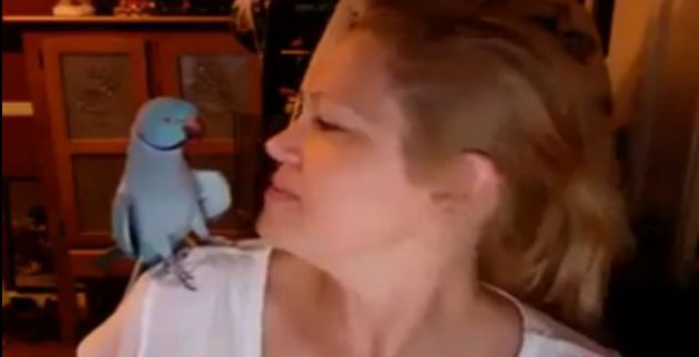 Ο μικρός παπαγάλος με το όνομα Cody δείχνει μεγάλη αδυναμία στο αφεντικό του καθώς θα δείτε οτι την φιλάει στο στόμα, παίζει μαζί της peek-a-boo (κούκου!) και της ανταποκρίνεται στο κάλεσμα της!