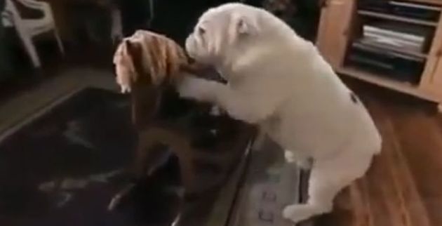 Ενα χαριτωμένο εκπαιδευμένο μπουλντόκ στη Ρωσία λατρεύει να λικνίζεται πάνω στο ξύλινο αλογάκι του!