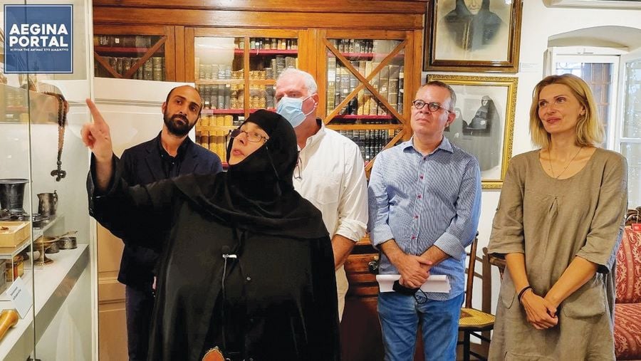 Η σκηνοθέτις της ταινίας «Ο άνθρωπος του Θεού» Γελένα Πόποβιτς επισκέφθηκε μαζί με τον σύντροφό της και παραγωγό της ταινίας Αλέξανδρο Πότερ, τον δήμαρχο του νησιού Γιάννη Ζορμπά και τον πρόεδρο της Επιτροπής Αίγινα 2021 Μανώλη Κοττάκη το ανακαινισμένο κελί του αγίου Νεκταρίου, στην Ιερά Μονή Αγίας Τριάδας – Αγίου Νεκταρίου Αίγινας που ο άγιος ίδρυσε.