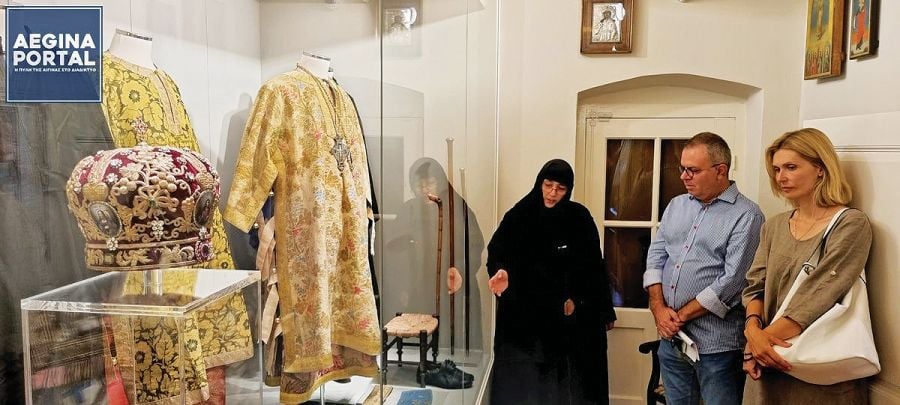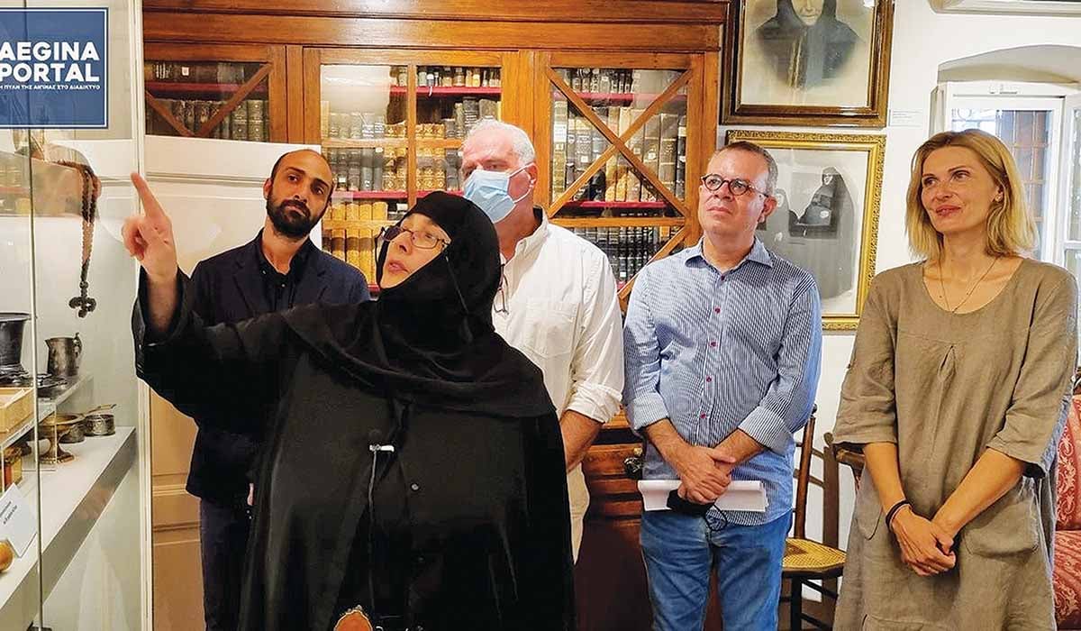 Νέα επίσκεψη της σκηνοθέτιδας Γελένα Πόποβιτς στο ανακαινισμένο δωματιάκι του «Ανθρώπου στου Θεού» στη Μονή Αγίας Τριάδας, στην Αίγινα