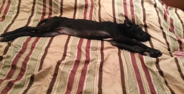 Ένα νυσταγμένο κουτάβι ράτσας Great Dane γκρινιάζει και αρνείται να σηκωθεί από το κρεβάτι, παρά τις προσπάθειες του ιδιοκτήτη του!
