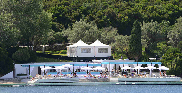Με διαπιστευμένα σκάφη μεταφέρθηκαν από το Νυδρί στον Σκορπιό και ανέβηκαν στο πλωτό παλάτι. Καθ’ όλη τη διάρκεια της βραδιάς φρόντιζαν ώστε να μη λείψει η σαμπάνια από τους καλεσμένους, ενώ χορευτές και χορεύτριες έδωσαν τον καλύτερό τους εαυτό και ξεσήκωσαν τους παρευρισκομένους.