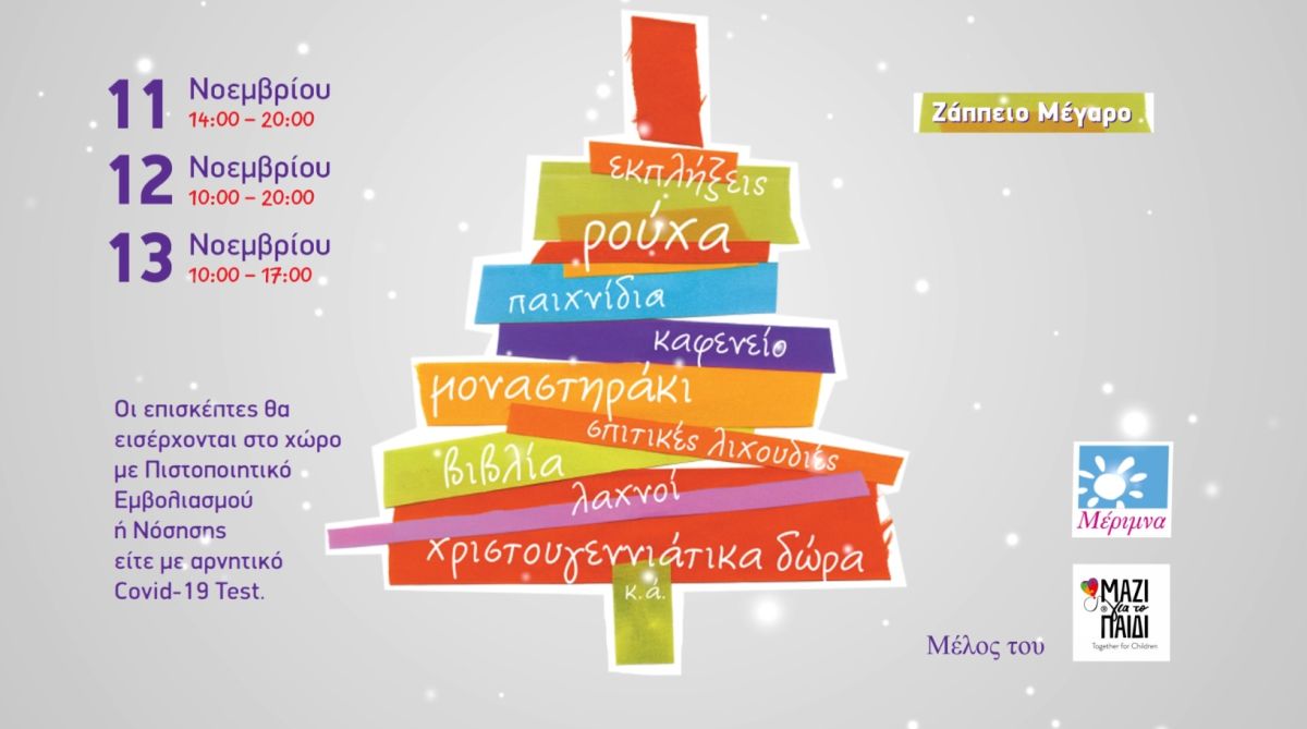 Οι «Φίλοι της Μέριμνας» ανοίγουν την περίοδο των Χριστουγεννιάτικων Εορταγορών με το παραδοσιακό, Φιλανθρωπικό Βazaar τους, που είναι γνωστό για την πλούσια ποικιλία των αντικειμένων και, κυρίως, για τις καταπληκτικές ευκαιρίες που διαθέτει σε ρούχα και αξεσουάρ!