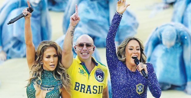 Με ένα ιδιαίτερα αποκαλυπτικό πράσινο κορμάκι με στρας, η J.Lo ανέβασε τη θερμοκρασία στις κερκίδες του γηπέδου, όταν τραγούδησε το «We Are One». Στο πλευρό της, ο ράπερ Pitbull και οι Βραζιλιάνοι καλλιτέχνες Κλαούντια Λέιτε και Ολόντουμ, που εμφανίστηκαν μπροστά στους χιλιάδες φιλάθλους της Κορίνθιανς Αρένα, αλλά και σε εκατομμύρια τηλεθεατές σε όλο τον κόσμο μέσα από μια τεράστια μπάλα που «άνοιξε» για τις ανάγκες του σόου.